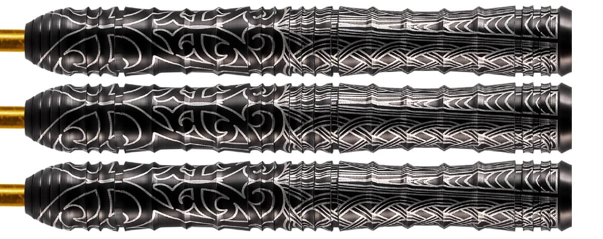 Geschmiedet durch harten Wettbewerb und kampferprobte Technik, die seit 1970 verfeinert wurde, tritt Warrior Kapene an, um unsere globale Truppe in die nächsten 50 Jahre zu führen. Mit seiner geraden Form und dem Schwerpunkt im Zentrum besticht Kapene durch einen großzügigen Haifischgriff entlang des Barrels. Hintere und vordere Ausbuchtungen verleihen diesem 90% Wolfram-Dartset zwei positive Wurfbereiche – für einen starken Schub und einen sicheren Bezugspunkt. Gepanzert mit hochfeinem Titan und einer lasergravierten Ta Moko-Hülse (Tribal Tattoo), die sich im Flug widerspiegelt.