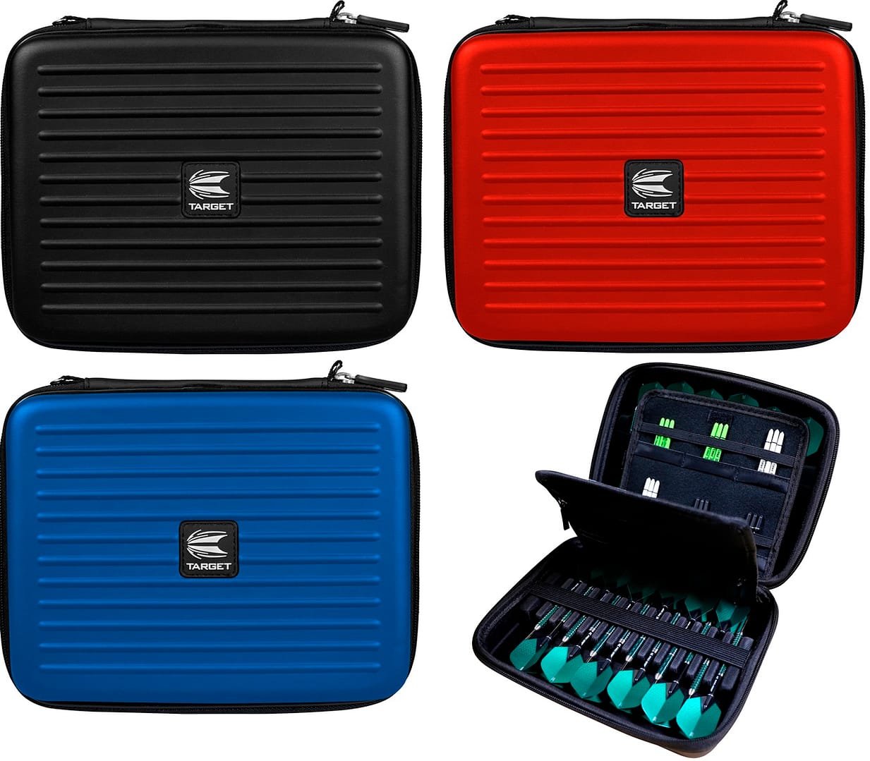 Die XXL-Version der Takoma Wallet für zusätzlichen Platz. Ein starkes EVA-Material wird verwendet, um die Steifigkeit zu erhalten und die Darts und das Zubehör im Inneren des Target Takoma Home XXL Wallet zu schützen. Im Inneren der Brieftasche wurde eine Samtschicht hinzugefügt, die sich weich anfühlt und kratzfest ist. Die Darts selbst werden mit einem elastischen Band an der Oberseite zusammengehalten, um Bewegungen im Inneren zu verhindern. Das Portemonnaie ist dick genug, um sicherzustellen, dass die Flights nicht zerdrückt werden. Außerdem befinden sich im Inneren des Koffers zwei Reißverschlusstaschen für Ersatzzubehör.
