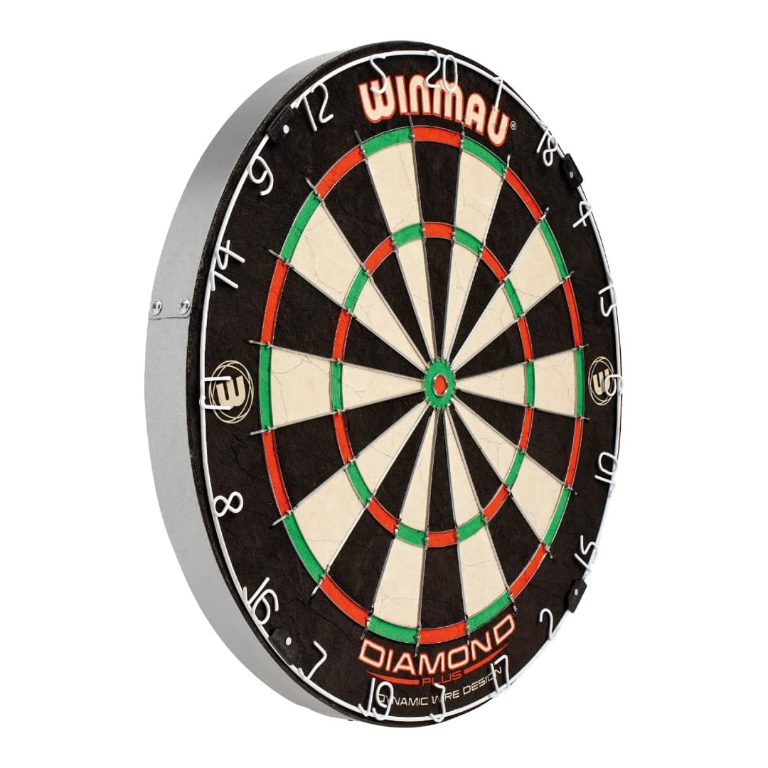 Der dreieckige Draht Diamond Plus ist für das moderne Spiel auf höchstem Niveau ausgelegt und bietet eine wesentlich verbesserte Haltbarkeit und Spielbarkeit mit Winmaus hochfester dynamischer Sektorverdrahtung. Diese nach den Standards der World Darts Federation gefertigte Dartscheibe mit Turnierzulassung ist mit gut sichtbaren Wertungszonen und einem entspiegelten Nummernring für erstklassige Leistungen ausgestattet