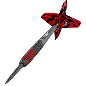 BULL’S Magma Steel Dart Magma besticht durch sein beeindruckendes Design. Die schwarzen und roten Gripzonen dieses Weltklasse-Darts sind ein absolutes Highlight. Die schwarze Titaniumbeschichtung kreiert eine einmalige Optik. Magma besteht aus 90% Tungsten und besticht durch höchste Qualität. Dieser Dart wurde mittels hochpräziser CNC-Frästechnik geschaffen, und er besitzt zudem eine geprüfte Gewichtsabweichung von < 0,1g….