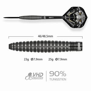 ONE80 Crocforce CF4 Steeltip Die One80 Crocforce Serie ist da und hält was sie verspricht! 4 verschiedene Modelle sodass für jeden Spieler etwas dabei ist. Egal ob gerades oder kopflastiges Barrel. Starker Grip sorgt dafür nicht abzurutschen und gibt dem Spieler die perfekte Kontrolle über die Darts. Für maximale Präzision. Erhältlich in 23g und 25g