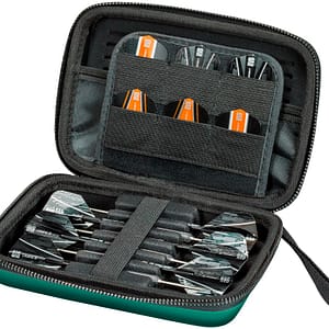 Mit dem Shard Wallet hat man immer alles an Equipment dabei. Sei es beim Turnier oder zum Training. Die Tasche besteht aus einer robusten Hülle und wird mit einem umlaufenden Reißverschluss sicher geschlossen. Im aufgeklappten Inneren können zwei komplett montierte Dartssets perfekt geschützt und sofort einsatzbereit transportiert werden. Darüber hinaus wurde ein Klappfach eingearbeitet. Hier…