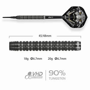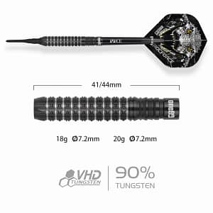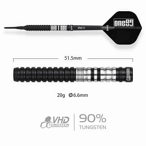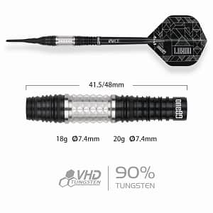 ONE80 Luxor II Iota Softtip Die beliebte One80 Luxor Serie in neuem Look, bekannt durch den starken, markanten Grip im silbernen Bereich eignet sich dieser Dart besonders für Spieler die ihre Darts gerne hinten greifen. Erhältlich in folgenden Gewichten: 18g 20g