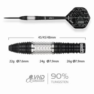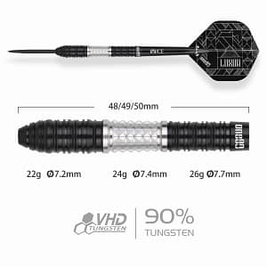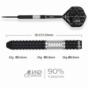 ONE80 Luxor II Iota Steeltip Die beliebte One80 Luxor Serie in neuem Look, bekannt durch den starken, markanten Grip im silbernen Bereich eignet sich dieser Dart besonders für Spieler die ihre Darts gerne im hinteren Bereich greifen. Erhältlich in 3 verschiedenen Gewichten: 22g 24g 26g