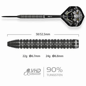 ONE80 Crocforce CF3 Steeltip Die One80 Crocforce Serie ist da und hält was sie verspricht! 4 verschiedene Modelle sodass für jeden Spieler etwas dabei ist. Egal ob gerades oder kopflastiges Barrel. Starker Grip sorgt dafür nicht abzurutschen und gibt dem Spieler die perfekte Kontrolle über die Darts. Für maximale Präzision. Erhältlich in 22g und 24g
