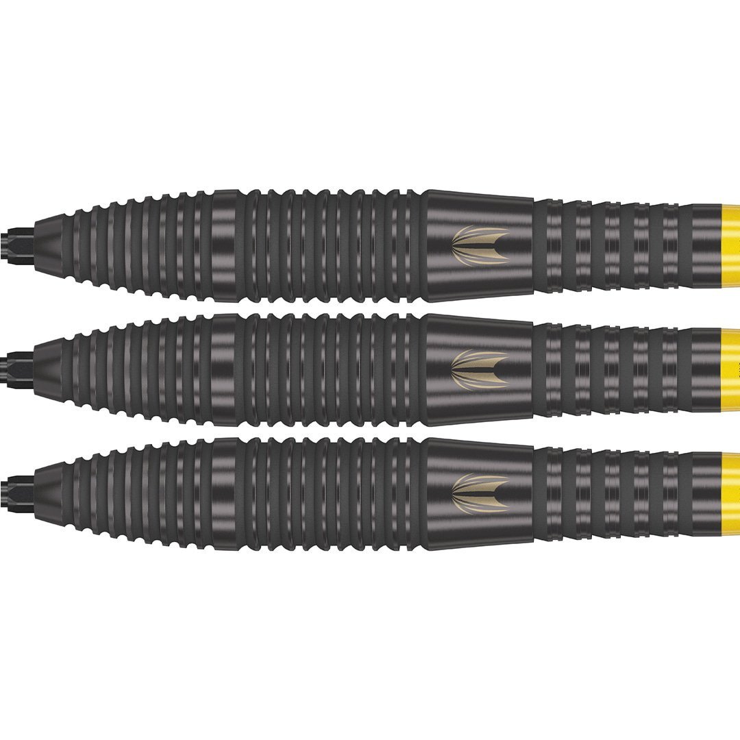 Mit einer atemberaubenden schwarzen Titanbeschichtung für eine zusätzliche Schicht der Haltbarkeit und verbesserte Ästhetik, die sandgestrahlten Radialrillen Griff ermöglicht eine bessere Kontrolle, so dass Sie das Vertrauen zu werfen mit Zielgenauigkeit. Die auf Präzision ausgelegten 90%igen Tungsten Barrels werden durch die beliebten Pro Grip Schäfte und Bolide Void Edition No.6 Flights ergänzt und mit den patentierten schwarzen 26mm Swiss Points von Target für einen komplett austauschbaren Dart abgeschlossen.