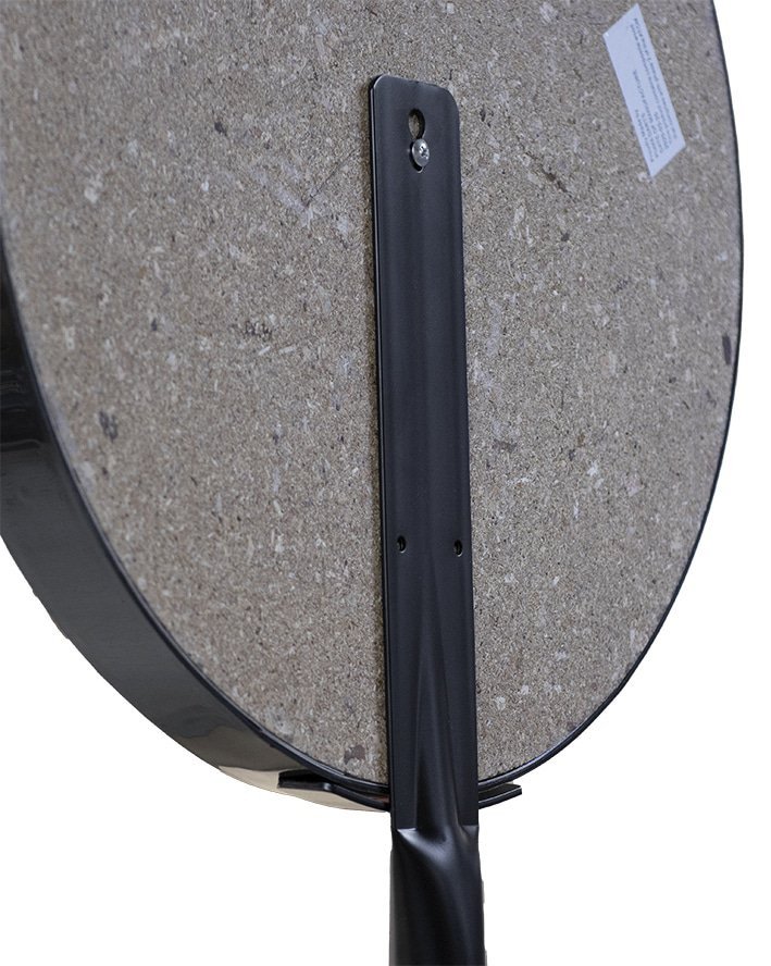 1. Legen Sie Ihre ausgewählte Dartscheibe mit der Vorderseite nach unten und befestigen Sie die mitgelieferte Halterung mithilfe des mittleren Lochs der Dartscheibe. Achten Sie darauf, dass die Vertikale der Halterung zwischen der 20 und der 3 auf der anderen Seite fluchtet.