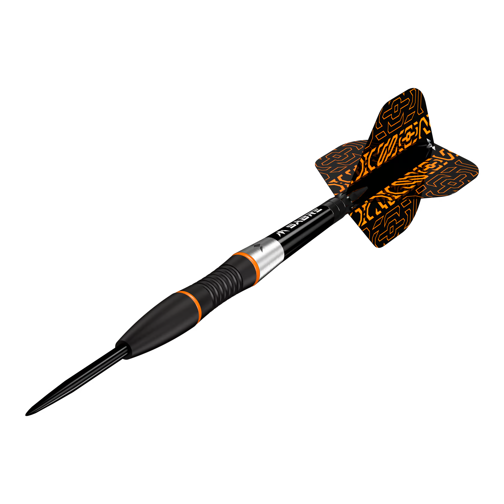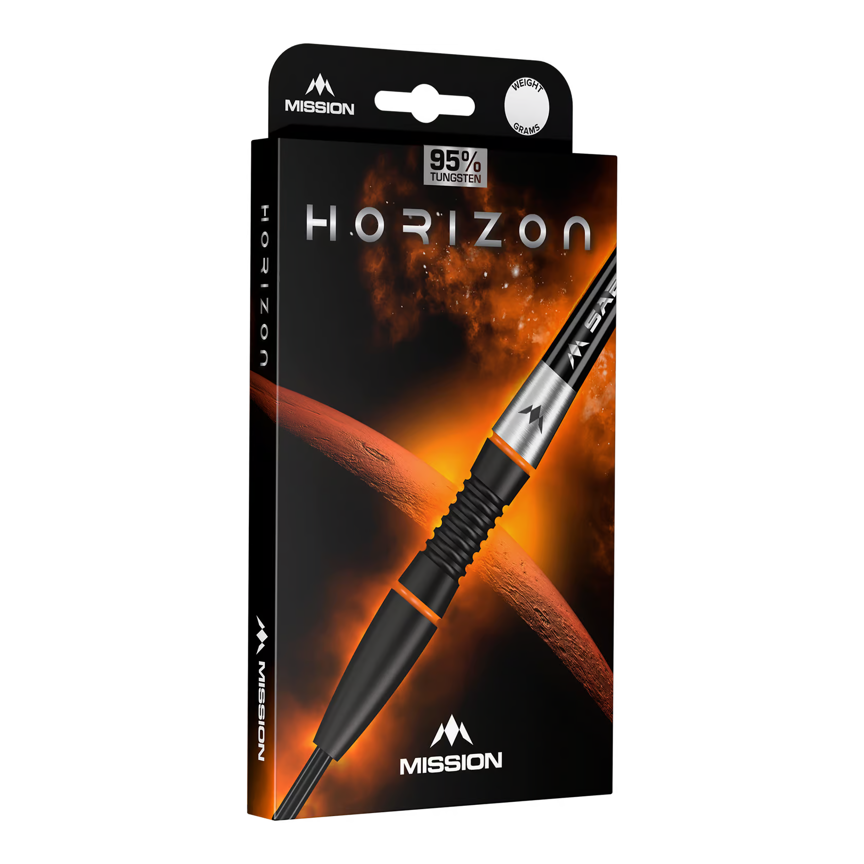 Mission Horizon Black PVD Orange Steeldarts mit einem Tungsten-Anteil von 95 %.