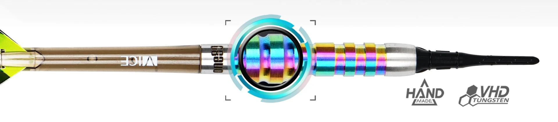 Alle Modelle der Chameleon Serie wurden mit einem mehrfarbigen Rainbow Coating beschichtet und aus 90%igen Tungsten gefertigt. Neben dem Aussehen ist auch jedes der verschiedenen Gripmuster außergewöhnlich gestaltet.