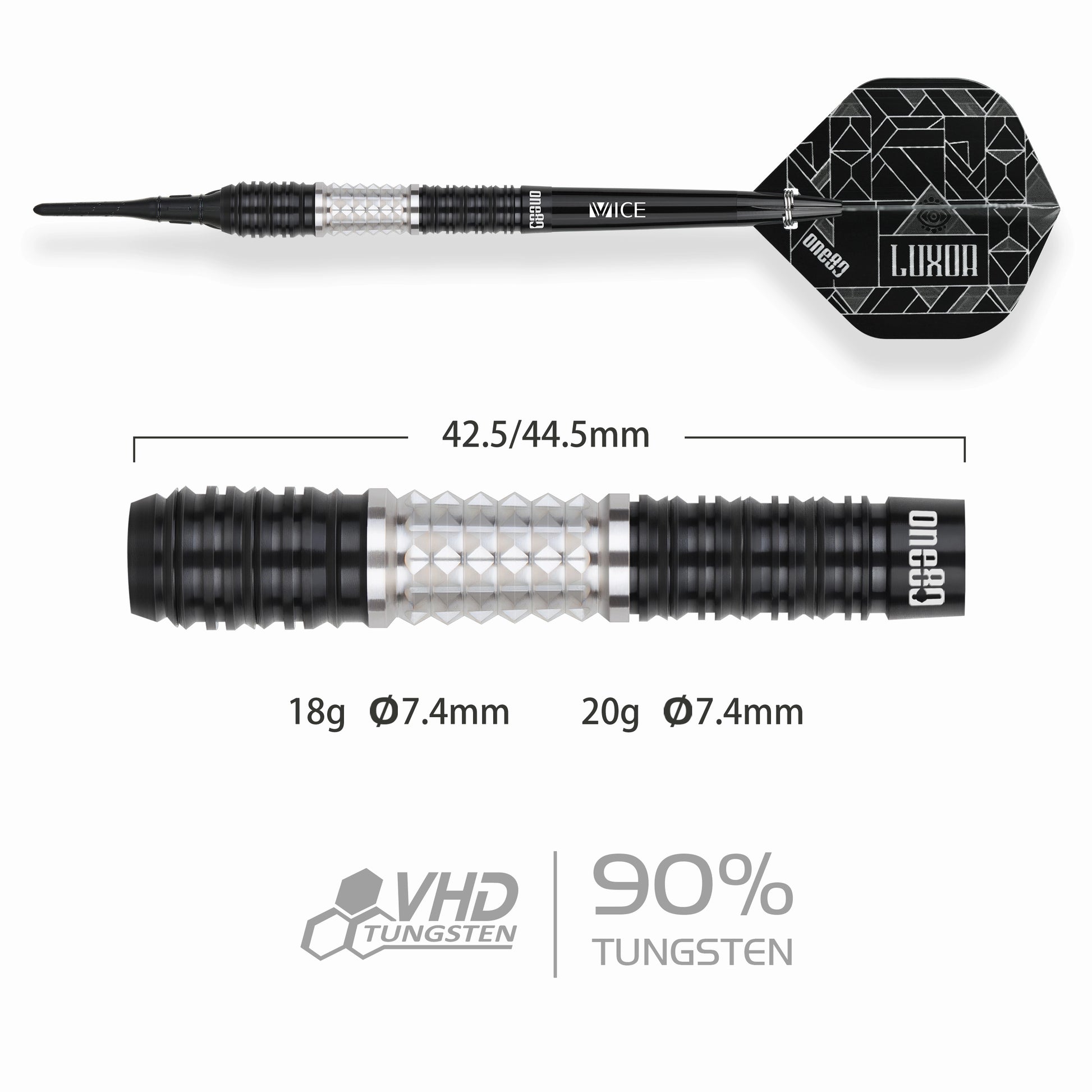 Die beliebte One80 Luxor Serie in neuem Look, bekannt durch den starken, markanten Grip im silbernen Bereich eignet sich dieser Dart besonders für Spieler die ihre Darts gerne mittig greifen.