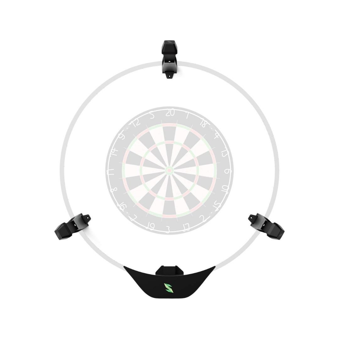 Das Scolia Home 2 Flex benötigt eine Standard-Dartscheibe mit herkömmlichen Abmessungen, Farben und einem Zahlenring aus Metall. Eine Standard-PU-Umrandung, eine stabile Wand (vorzugsweise aus Ziegel oder Beton) mit einer ebenen Fläche um die Dartscheibe herum und eine kabelgebundene Internetverbindung* sind ebenfalls erforderlich. *Für eine drahtlose Internetverbindung kann ein Powerline-Adapter verwendet werden.
