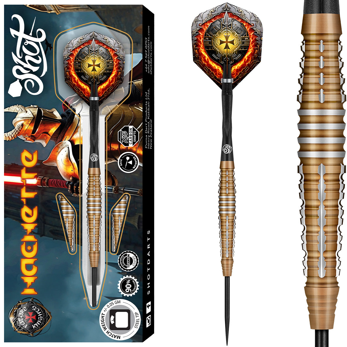 Hachette bringt die Energie eines Bosses – alles dreht sich um Dominanz. Dieses Set in schlanker Raketenform verfügt über einen gemusterten Hai-Frontgriff mit zusätzlichen konkaven Kanten, die den Griff verbessern und gleichzeitig ein sanftes Loslassen gewährleisten. Die kampfbereite Kombination aus Hai und breiten Ringen in der Mitte, gepaart mit einem doppelt gestapelten Hai-Hintergriff, sorgt für zusätzlichen Biss. Shot Future Knights Hachette sorgt für Aufsehen, bricht die Regeln und holt sich den Sieg, bevor das Spiel überhaupt begonnen hat!