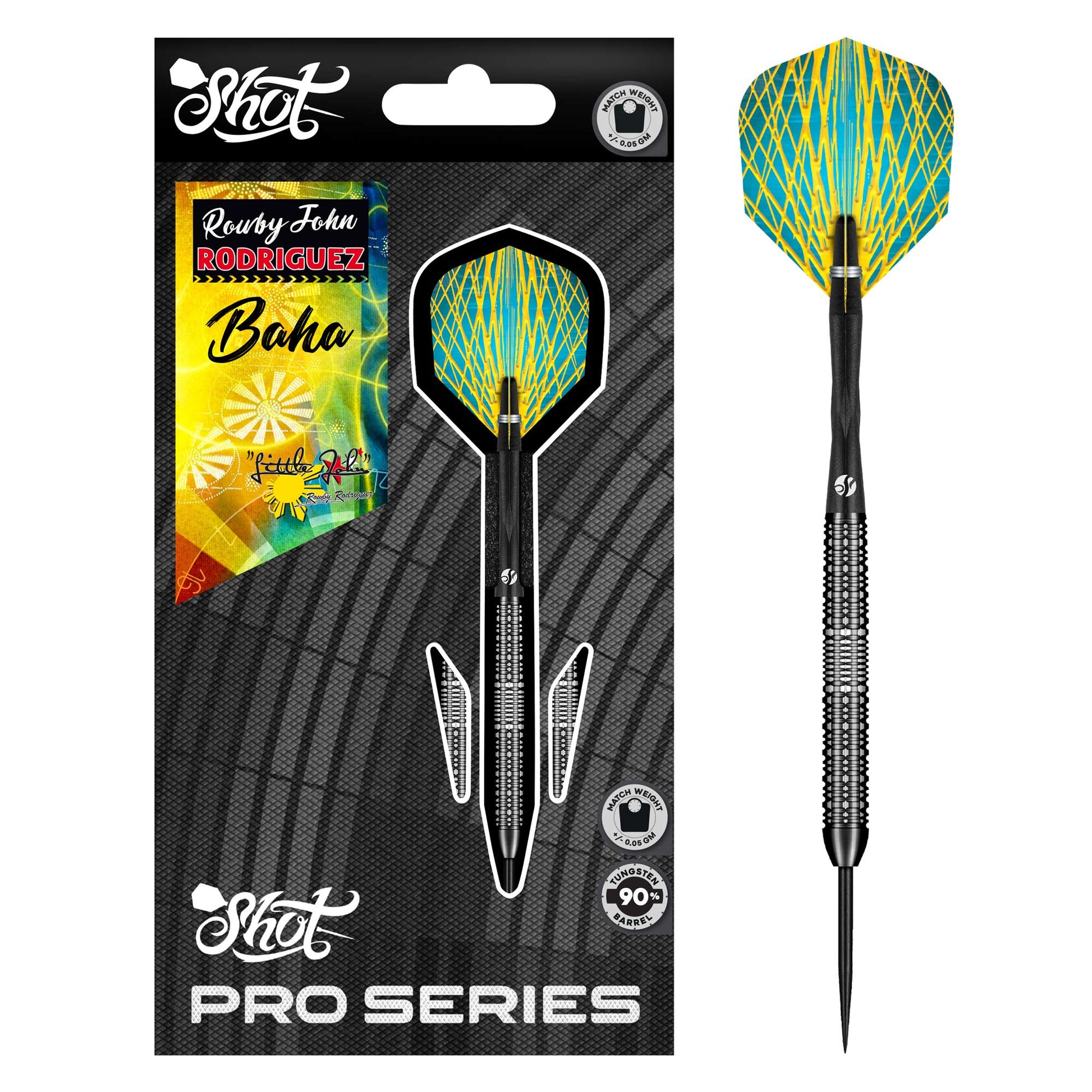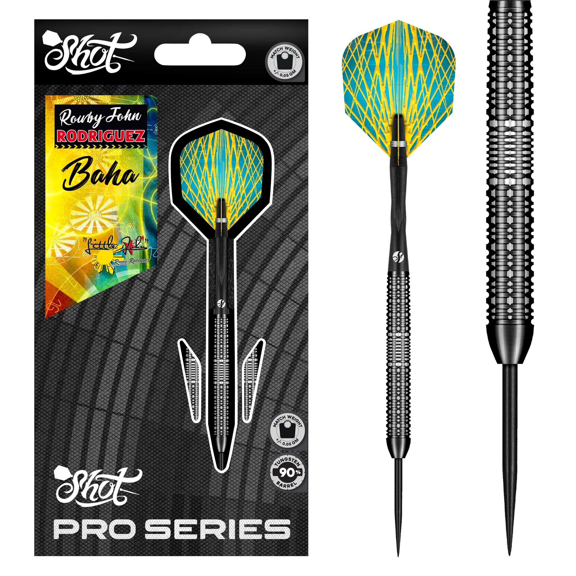 Die Shot Rowby-John Rodriguez Baha 90% Darts sind ein exklusives Modell, das in Zusammenarbeit mit dem Profispieler Rowby-John Rodriguez entwickelt wurde. Hergestellt aus 90 % Wolfram für professionelle Haltbarkeit und ein schlankes Profil, bieten diese Darts verbesserte Kontrolle und ein präzises Wurfgefühl bei jedem Wurf.