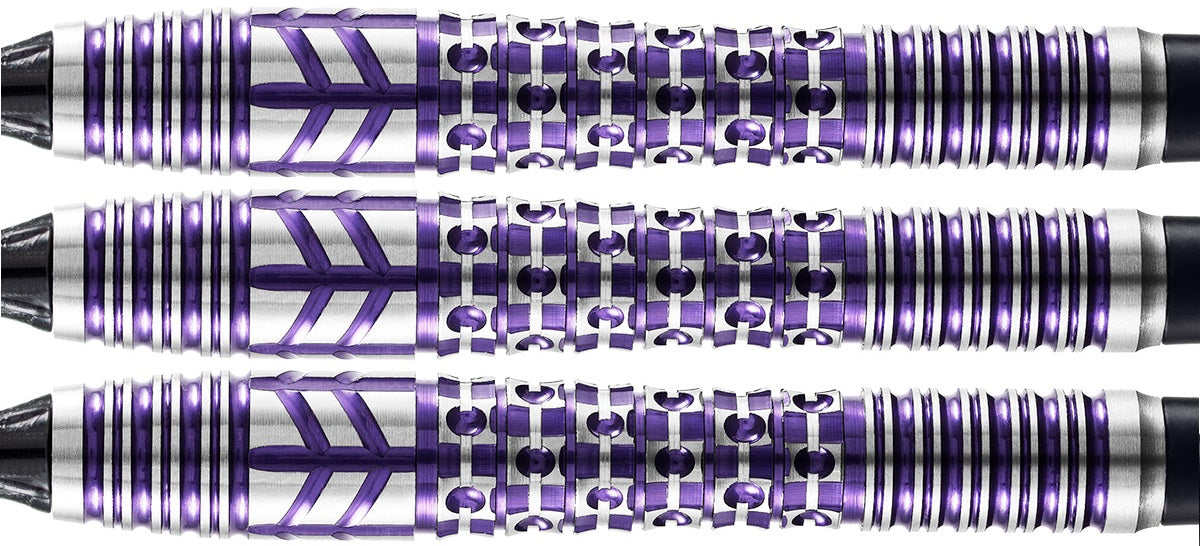 Dieses vielseitige, vorne gewichtete Shot Softtip Viking Shield Maiden Dartset verfügt über drei klare Griffzonen in zwei Griffstilen.
