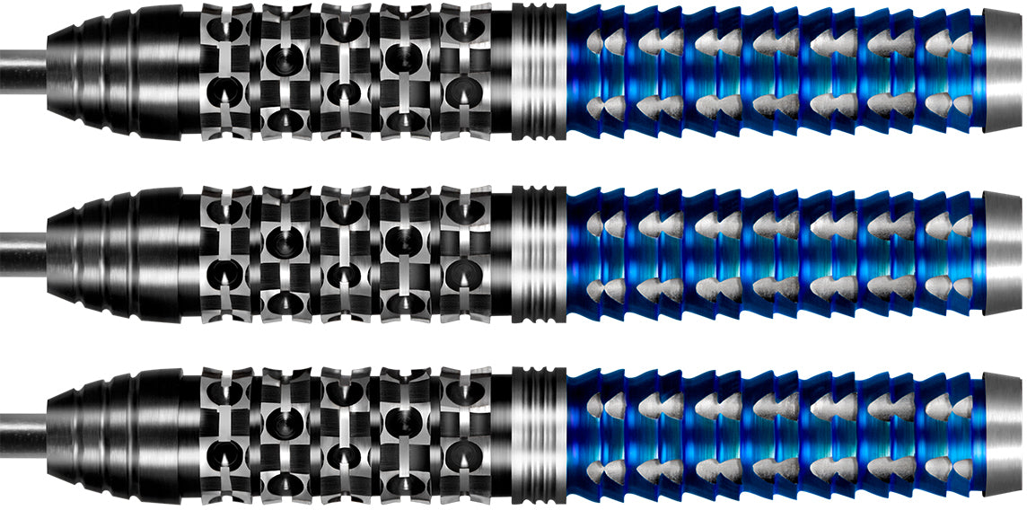 Glänzend in einer tiefschwarzen Titanbeschichtung mit einem subtilen Schimmer von Mitternachtsblau, wie ein ausgebreiteter Rabenflügel, vollendet mit einem glänzenden, handgezeichneten Flug. Zücken Sie Ihre Shot Viking Raven Darts mit 90 % Wolfram – und machen Sie Ihren Gegnern Angst.