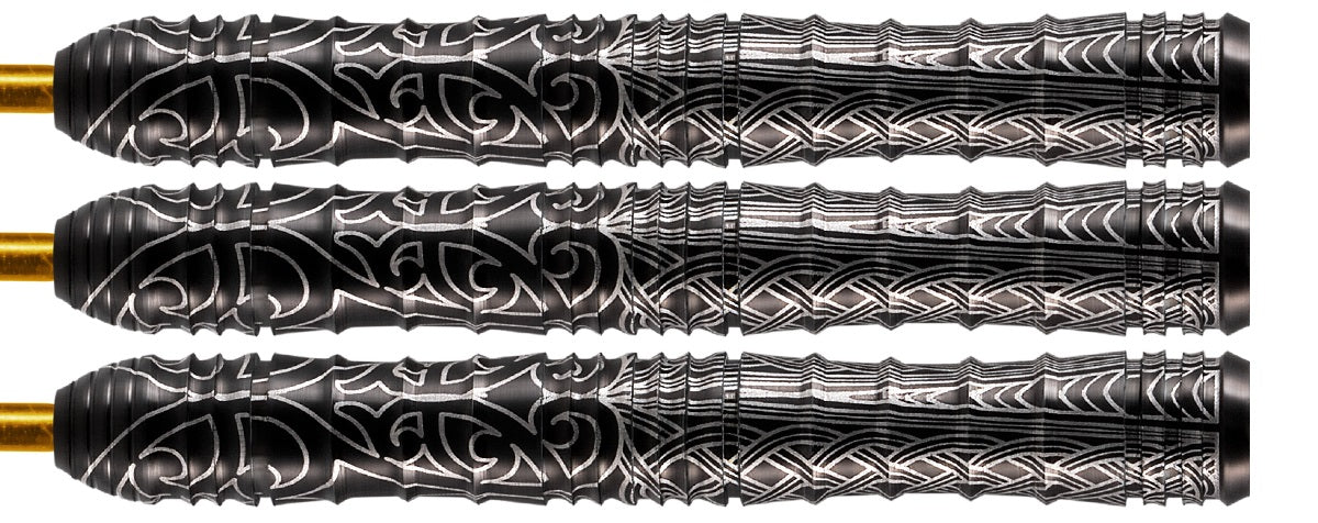 Geschmiedet durch harten Wettbewerb und kampferprobte Technik, die seit 1970 verfeinert wurde, tritt Warrior Kapene an, um unsere globale Truppe in die nächsten 50 Jahre zu führen. Mit seiner geraden Form und dem Schwerpunkt im Zentrum besticht Kapene durch einen großzügigen Haifischgriff entlang des Barrels. Hintere und vordere Ausbuchtungen verleihen diesem 90% Wolfram-Dartset zwei positive Wurfbereiche – für einen starken Schub und einen sicheren Bezugspunkt. Gepanzert mit hochfeinem Titan und einer lasergravierten Ta Moko-Hülse (Tribal Tattoo), die sich im Flug widerspiegelt.