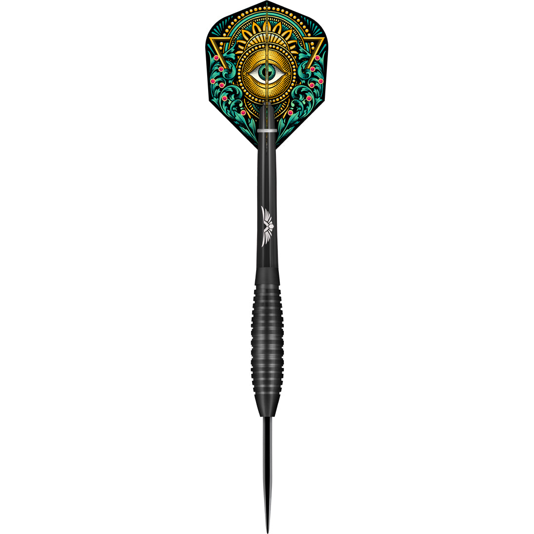 Der Kensho, gefertigt aus tiefschwarzem Titan, besticht durch seine klassischen Ringgriffe und die präzisen Druckpunkte, die ein müheloses Abwerfen ermöglichen. Der kompakte und wendige Kensho korrigiert seine Flugbahn selbst, um die Dartscheibe perfekt und präzise zu treffen und so gute Gewohnheiten bei aufstrebenden Spielern zu fördern. Gewinnen Sie Selbstvertrauen mit diesem Dartset – es wird Sie nicht enttäuschen. *Die mitgelieferten Schäfte können von der Abbildung abweichen.
